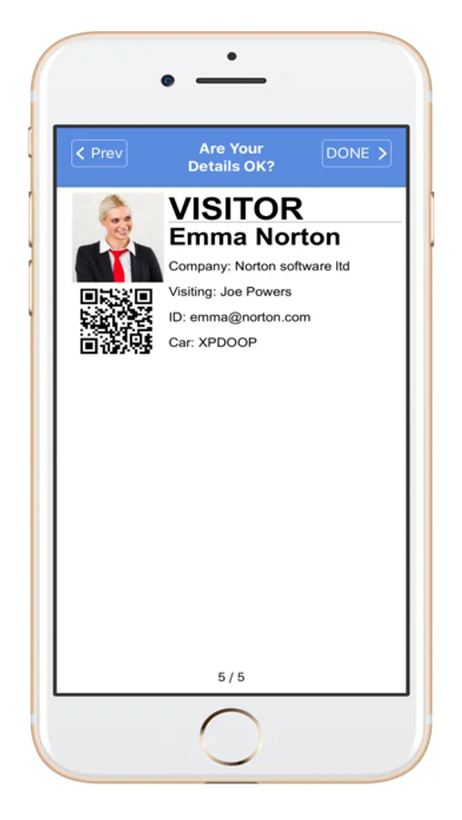 - QR Code emailed to visitor