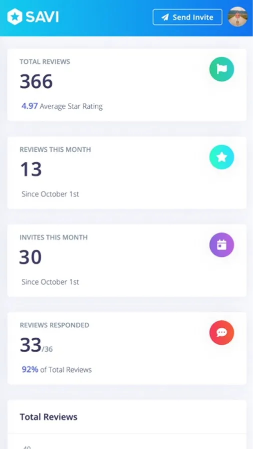 The Savi dashboard collects all your online reviews and displays them in one easy to use spot.
