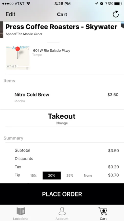 - Order & Pay - use Apple Pay or a saved credit/debit card