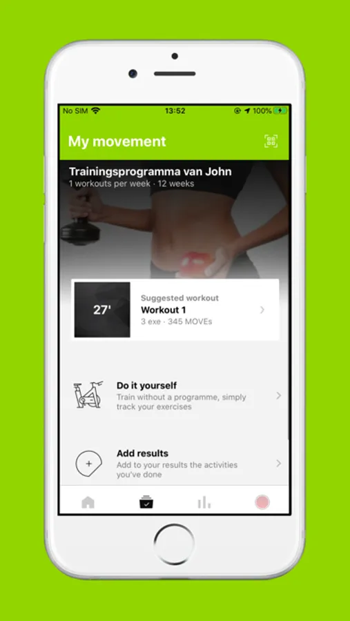 Der schnellste und einfachste Weg ist es, die MOVEs direkt an den Technogym Geräten zu sammeln. Loggen Sie sich mit Ihrem mywellness Account an den Geräten ein und trainieren Sie mit den besten Trainingsprogrammen. Mit der App können Sie sich Ihr Trainingsprogramm, die Details der Übungen und Videos direkt ansehen. Resultate werden automatisch, während Ihrer Trainingseinheit gespeichert.