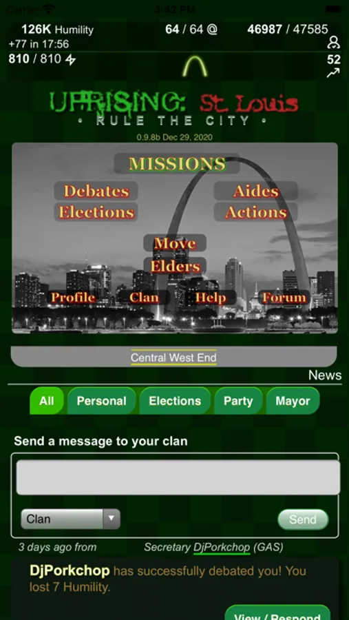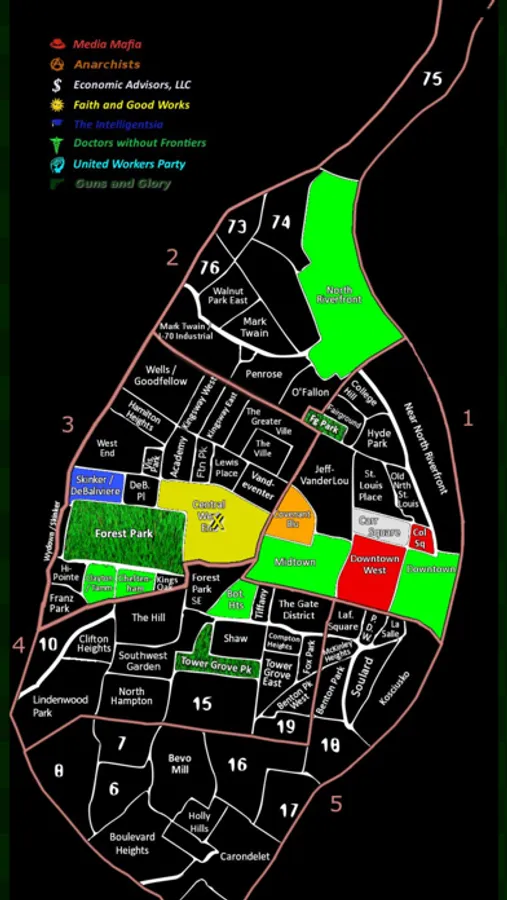 St. Louis, present day, in an alternate reality. Your goal is to work with (and against) the political parties in St. Louis to control key neighborhoods in the city to support your bid to become mayor of St. Louis.