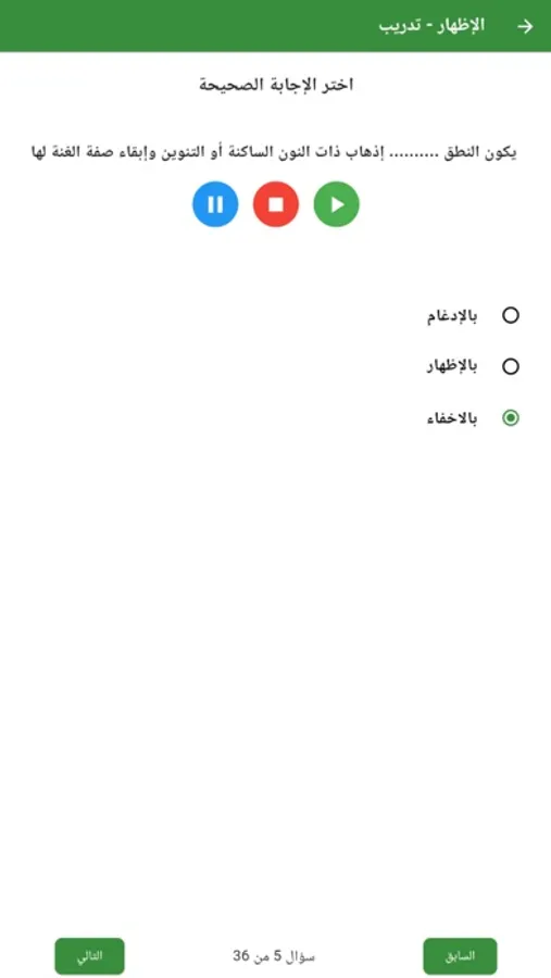 5- Level Five => Nunation with its three types (fatha, damma, kasra)