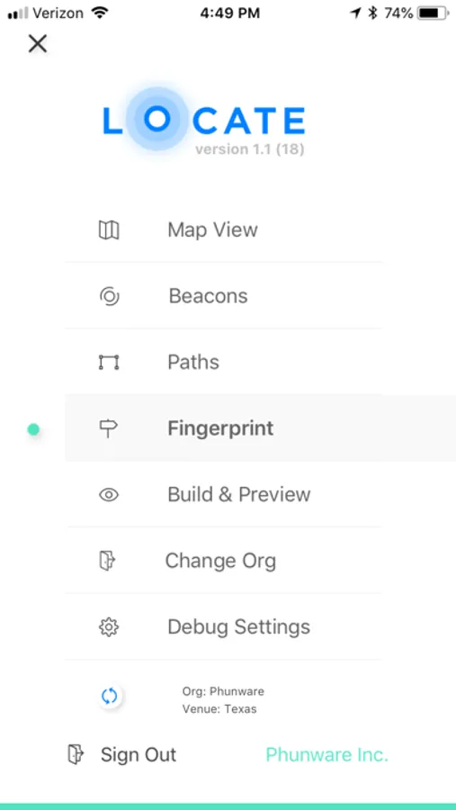 The Phunware Locate app allows users to walk through the end to end experience of setting up their map for highly accurate blue dot navigation wayfinding. Within the app users can, at a floor level, create paths, manage beacons, walk to fingerprint, and preview the blue dot experience. The fingerprinted data is then used to present navigation and blue dot wayfinding for end users of mobile apps powered by Phunware Location Services. This app can only be used by users authorized by Phunware.