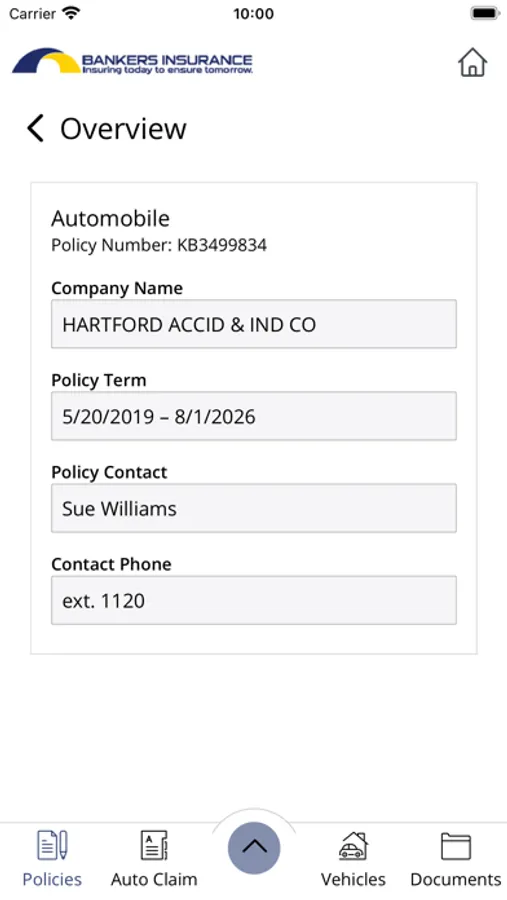 • View Policy coverage information including vehicles and drivers