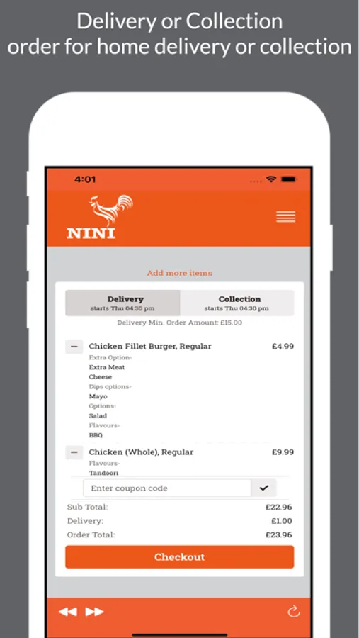 - Delivery or Collection