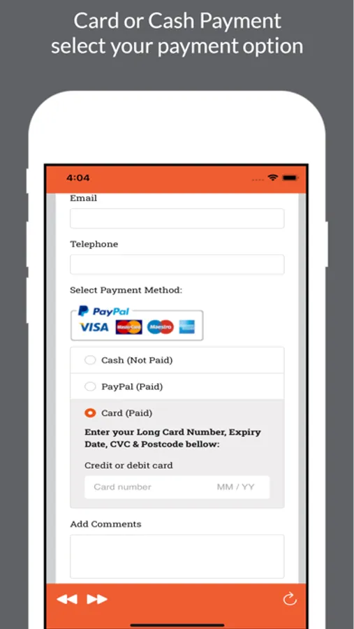 - Cash or Card Payment (SSL enabled)