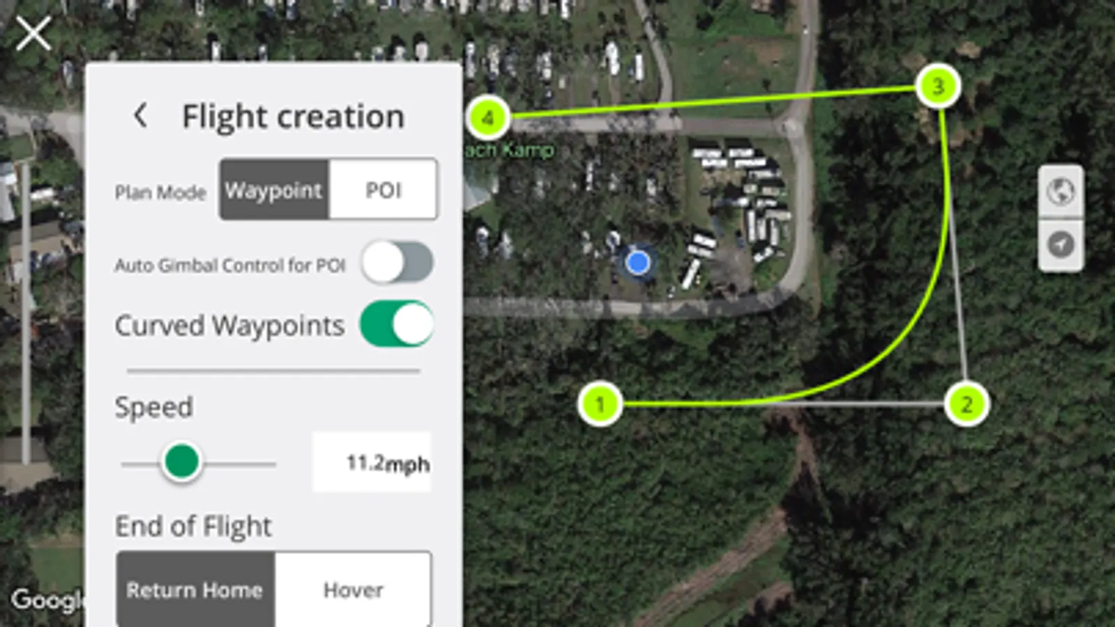 Create a flight plan with a KML file, grid or waypoint plan