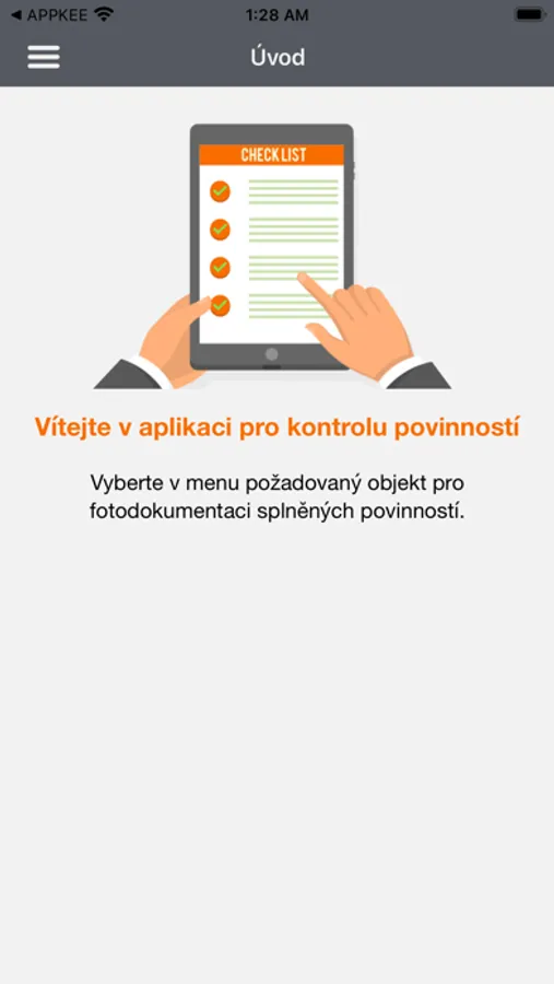 Aplikace pro kontrolu poviností. Aplikace umožňuje posílat balík fotografií na základě požadavků v aplikaci pro danou povinost.