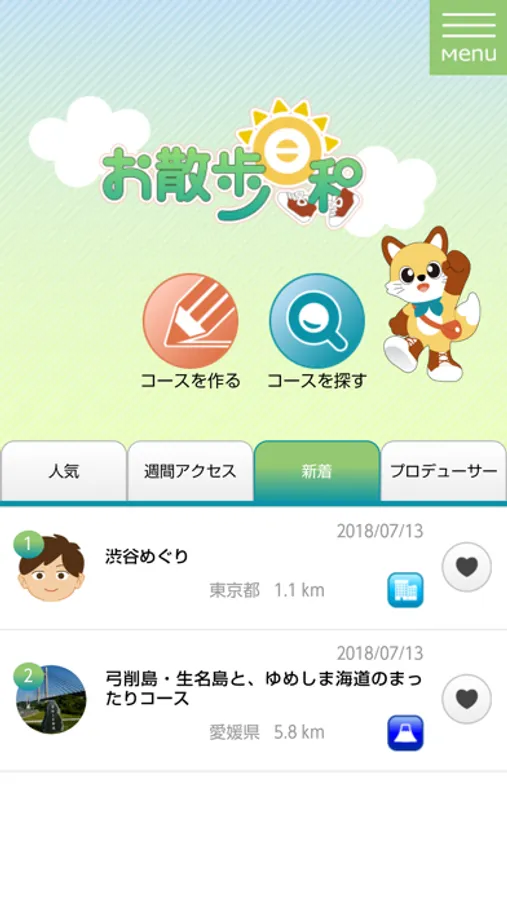とっておきの散歩コースや福祉対応の散歩コースを自由に投稿して公開することができます。 たくさんの散歩コースの中から人気のコースや地元の人しか知らないレアなコースまで、好きなコースを探し出して歩くことができます。 散歩中は、地図に散歩コースが表示され、見どころに近づくと自動的に案内画面が表示され、アナウンスも流れるので、見逃してしまう心配がありません。