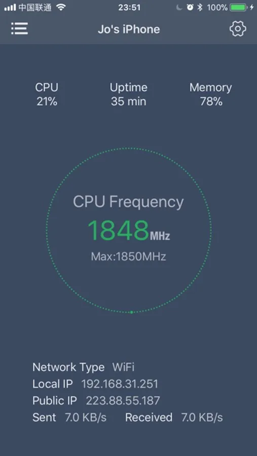 Network: Local and public IP, Upload download speed