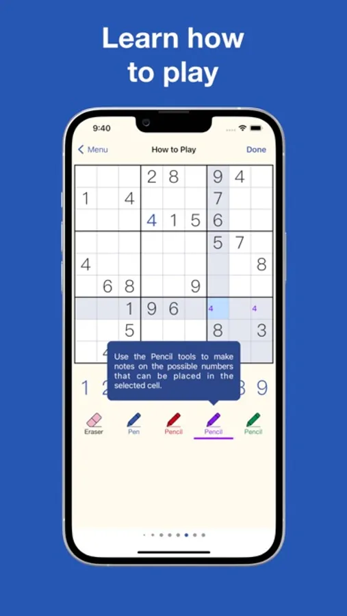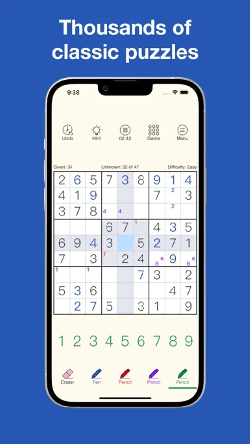 Featuring four levels of difficulty so that you can play a quick game when you only have 5 minutes to spare, or a more challenging puzzle that will put your reasoning skills to the test. There are thousands of puzzles waiting for you to solve.