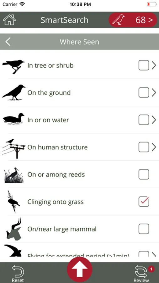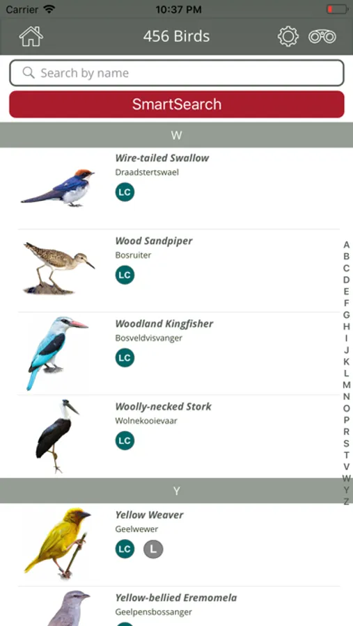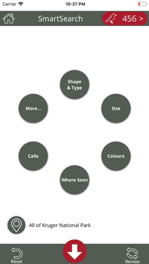 The SmartSearch function allows you to select your current, or any other location and the birds at that location will be filtered. Over and above the GPS location, you can search by shape, type, colours, size, where seen, bird calls and more. There are 100's of attributes you can choose from, which makes identifying a bird accurate and easy. As a first ever bird app achievement, the resulting bird list is sorted by relevance with the most probable birds matching your search criteria at the top, which makes it extremely quick and accurate. The ability to remove birds from the results is a game-changer. It even has a section for hard to identify birds (LBJ's, etc)