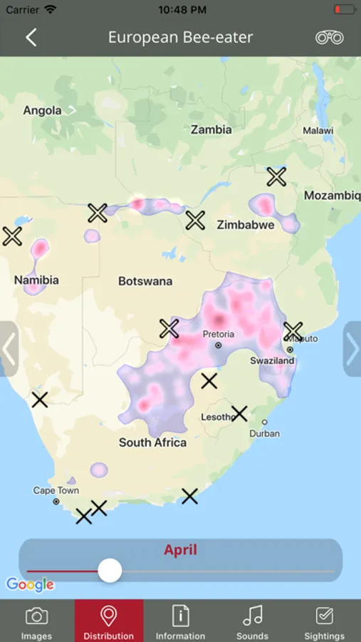 - Interactive and accurate bird distribution maps, even showing the migration patterns per month where applicable.