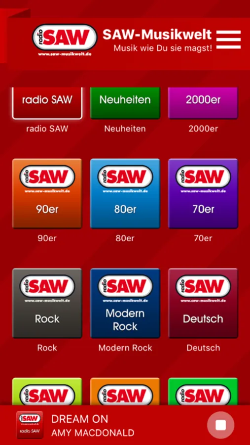 Die SAW-Musikwelt, das ist Musik wie Du sie magst! Wenn Du nonstop Deine Lieblingsmusik hören willst, dann bist Du hier genau richtig! Wähle aus 20 verschiedenen Webradios und erlebe die besten Songs für genau Deinen Musikgeschmack.