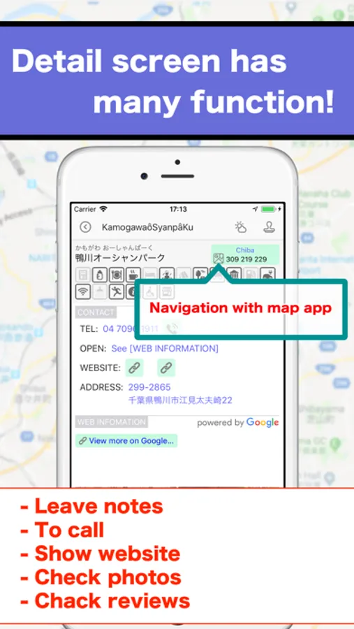 You can check reviews and you can also be able to look for nearby places (such as hot springs and restaurants) at a road side station.
