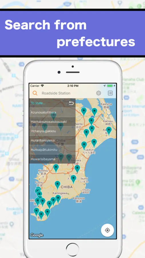 If you choose "Region > State" from the pull-down menu, you can stand pin up a road side station's in the designated prefecture on tha map.