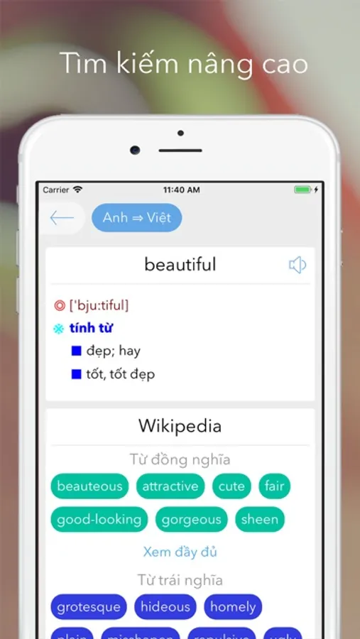 - Với thuật toán tìm kiếm thông minh theo từ khoá (kể cả đối với từ không nguyên mẫu), cùng với khả năng hỗ trợ đa ngôn ngữ và google dịch, bigdict cung cấp cho bạn giải pháp tra từ tuyệt vời với trải nghiệm hoàn hảo trên iOS.