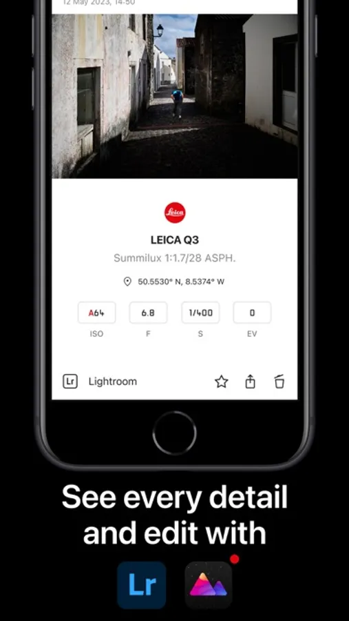 – Lightroom button for direct editing features in the Adobe Lightroom app