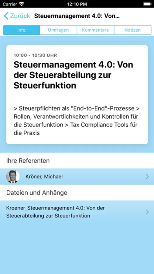 Die Seminare-App bietet Ihnen zusätzlich die Möglichkeit, während der Veranstaltung an themenspezifischen Live-Umfragen und Diskussionen teilzunehmen, sowie Support-Anfrage zu öffnen.