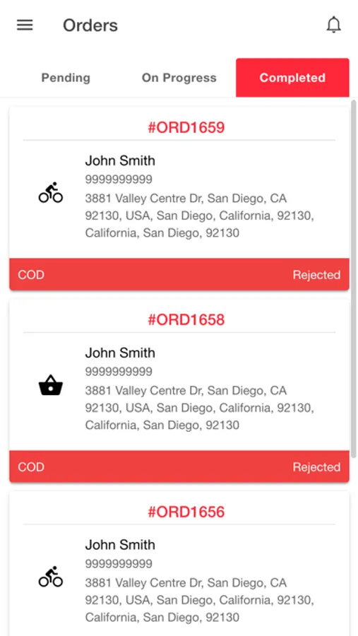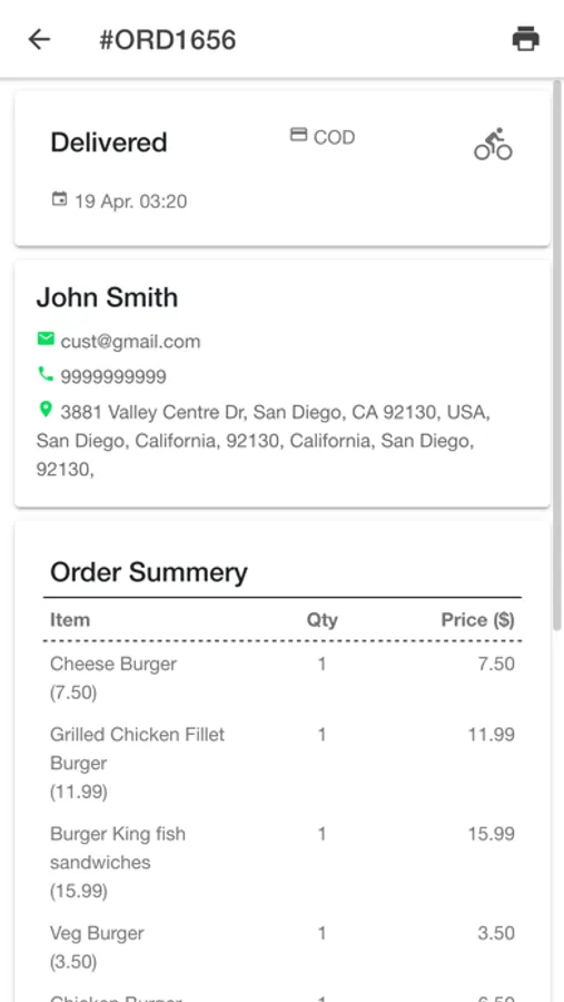 After clicking on the pending order, the smartphone will display all relevant details of individual order: customer details and delivery details.