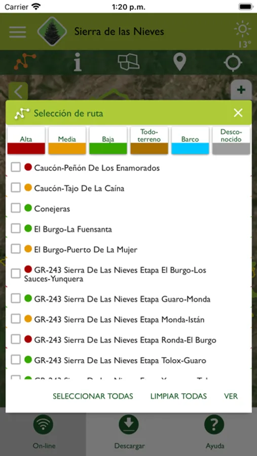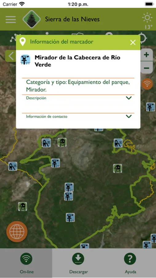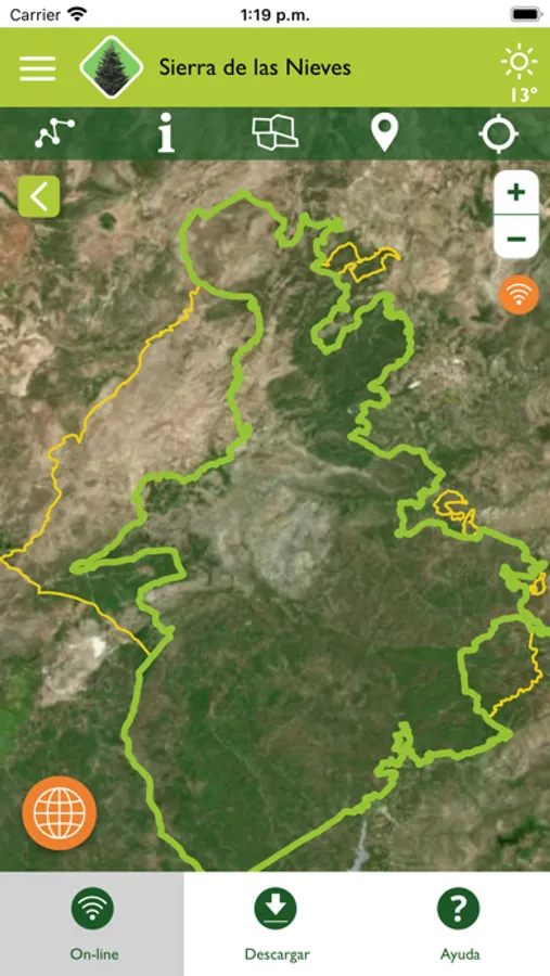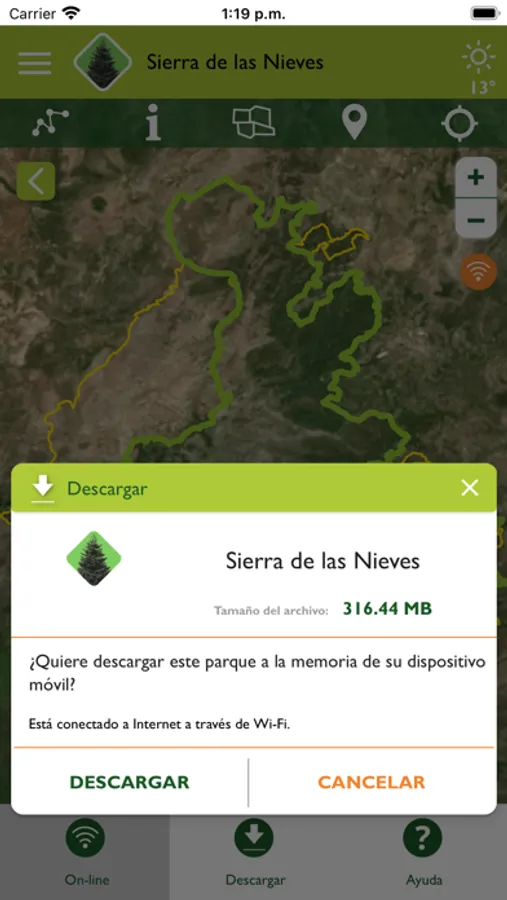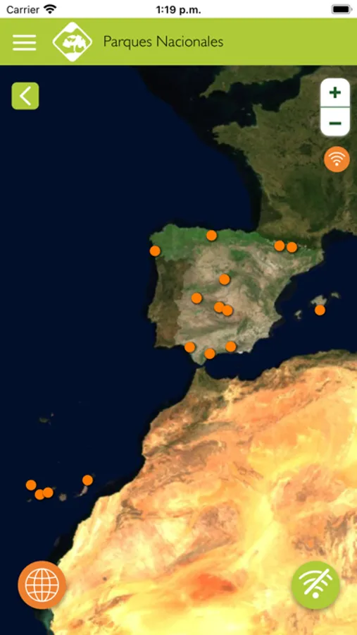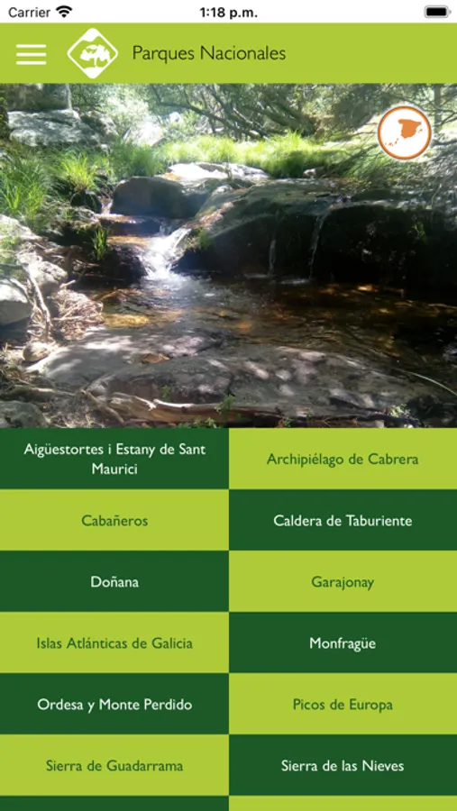 Para poder usar la aplicación sin cobertura, no olvides descargar previamente los datos del Parque Nacional que deseas visitar.