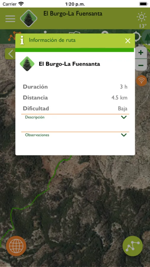 También incluye cientos de puntos de interés como centros de información, alojamientos, miradores, refugios, etc., con su localización e información de contacto y rutas para recorrer con información acerca de duración, dificultad, etc.