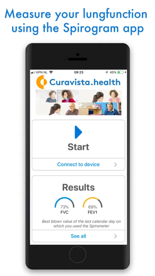 A Curavista health app, fit to be used in combination with the MIR Spirobank Smart.