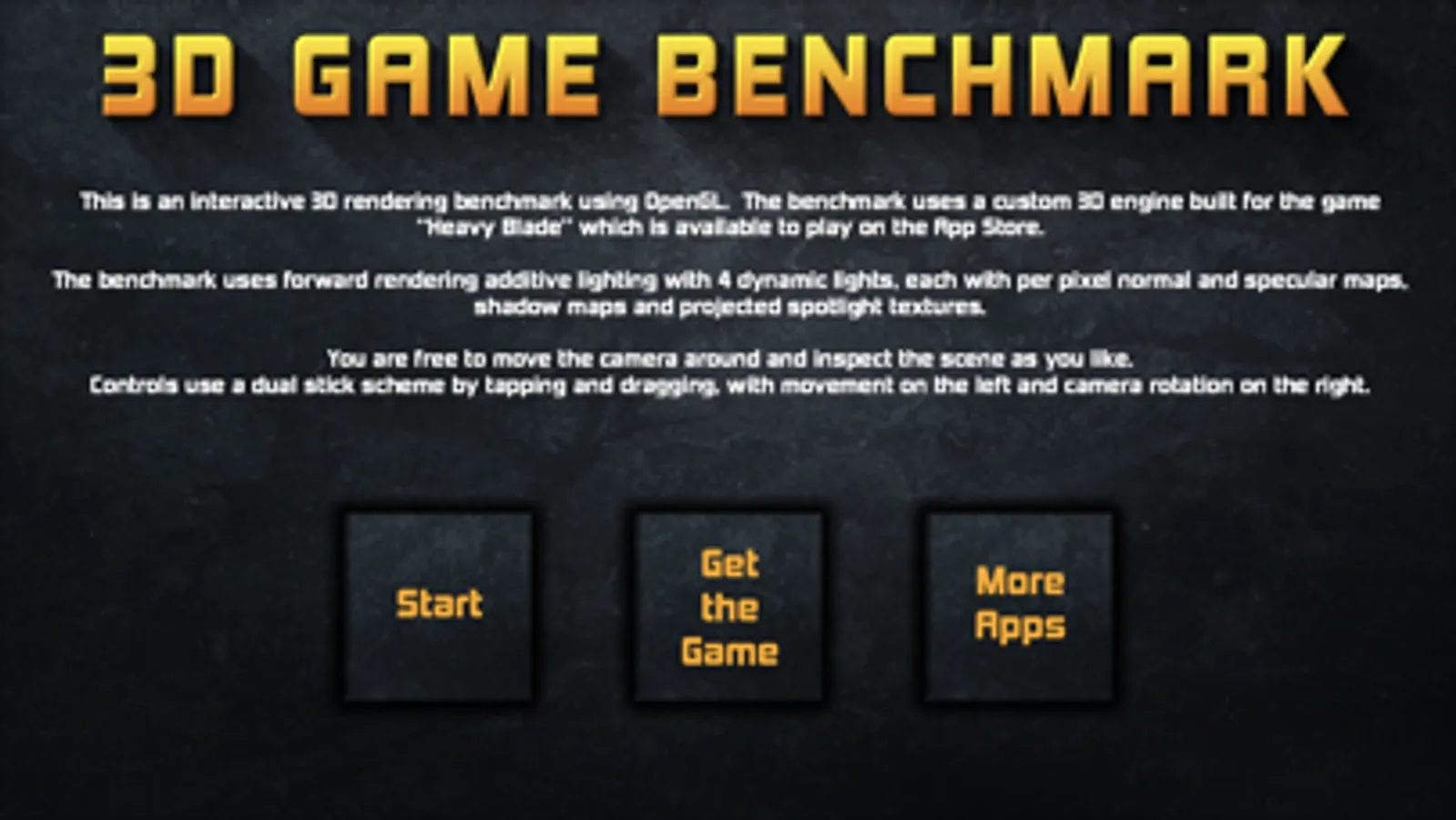 3D Game Benchmark is an interactive benchmark utility to test the speed of your device in an actual game engine. The benchmark shows the FPS (frames per second) while displaying scenes with high triangle and pixel shader complexity.