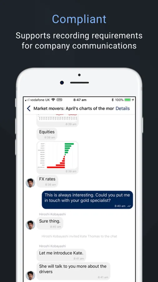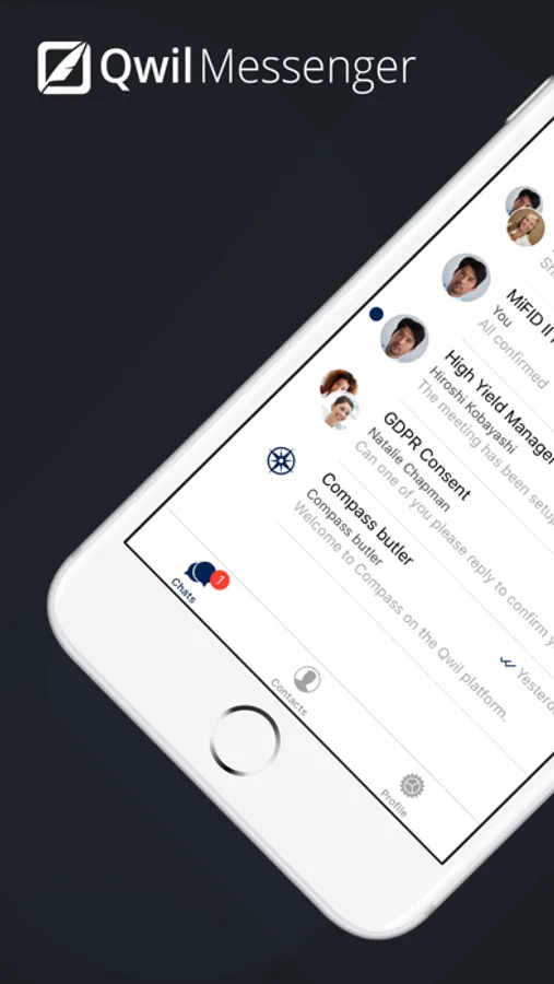 Qwil Messenger is a global chat app that enables participants in any location to engage in branded, professional conversations with their companies whilst meeting the most stringent security and regulatory requirements. Simply swipe between each company's brand space and chat. It's that simple.