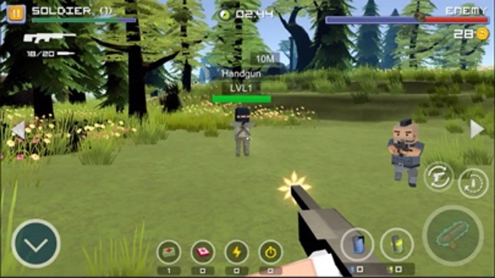 You also can buy the bullets for your Handgun (M1911), Shotgun (828U), SMG (MP5K), Sniper gun (AWM, M82A3), assault (AK47, M4A1), nerf guns, machine guns, minigun (M134), rocket launchers (RPG 7) before starting each mission in Pixel royale war (block craft 3d)