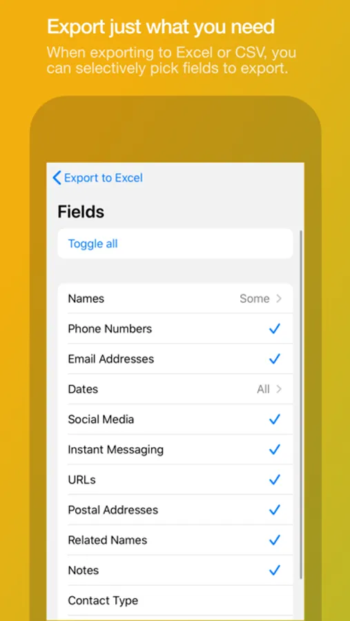 - Unlike similar apps, this one lets you pick selectively fields and contact groups to export