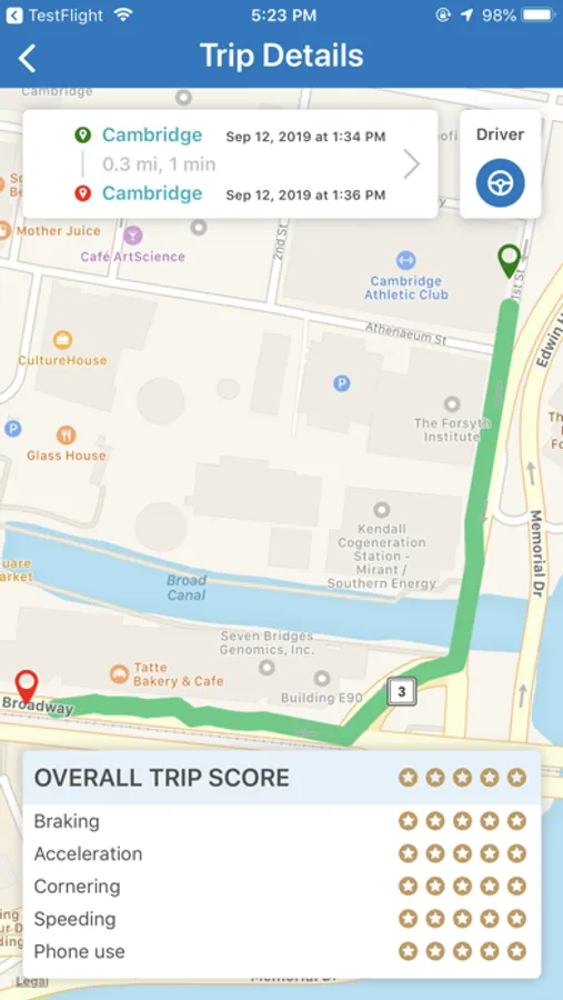 The application determines how well drivers are doing by giving them a score based on their performance in the categories of phone distraction, speeding, acceleration, braking, and cornering – with higher-risk behaviors, such as distraction and speeding, weighted more heavily. Scores are captured and reset at the end of each two-week scoring period.