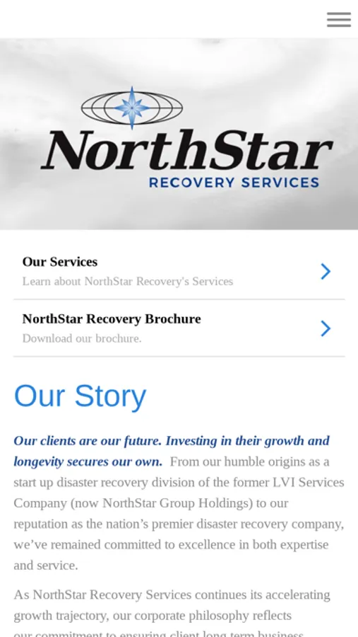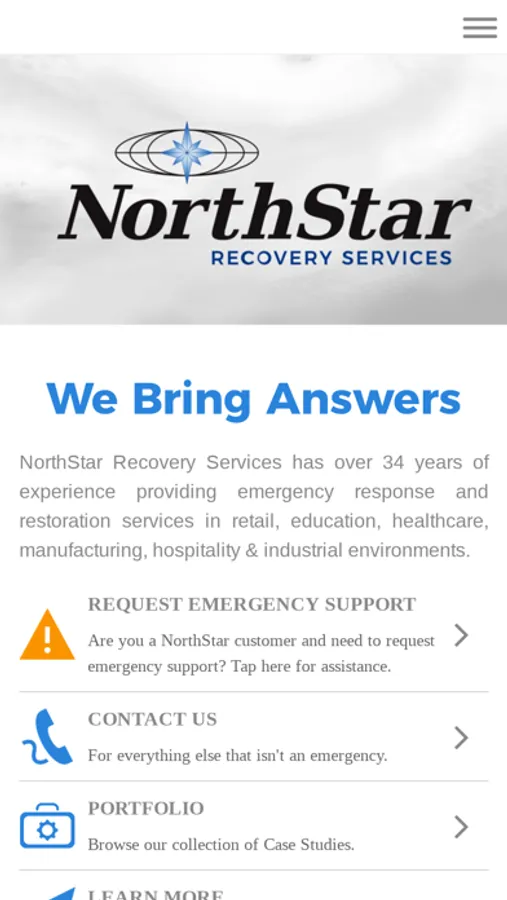The new NorthStar app will provide both clients and potential clients information about NorthStar, a snapshot of our team, several Case Studies demonstrating NorthStar’s capabilities, and much more. Current clients are able to log in with their NorthStar credentials to report a loss and send loss information including photos and messages to their dedicated NorthStar Account or Operations Managers. When timing is critical, the NorthStar app allows clients to request an emergency response quicker and more efficiently than ever before. Download today and be ready when disaster strikes!