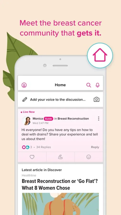 Like all of your favorite social networks, we’ve designed an activity feed to connect you with other members living with breast cancer. We pride ourselves on making Bezzy BC a safe and secure space where you can join live discussions, connect one-to-one, and read the latest articles and personal stories.
