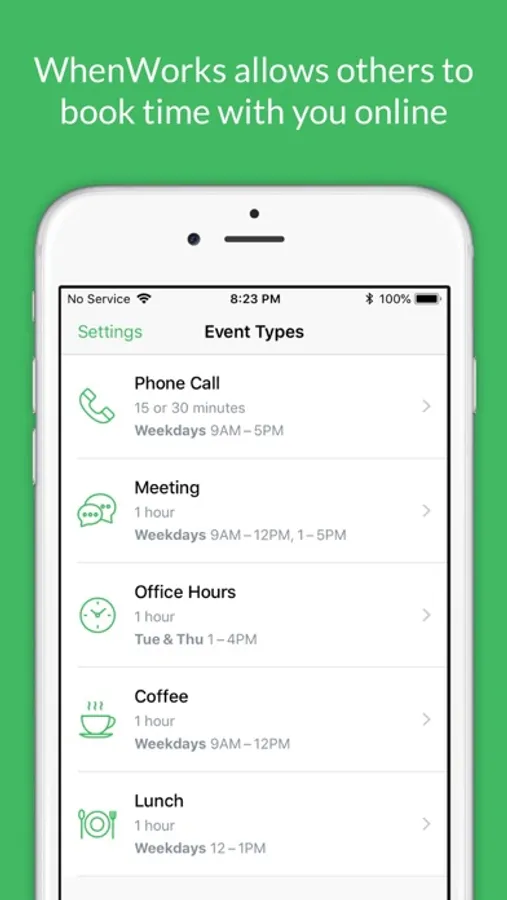 WhenWorks integrates directly with the built-in Calendar app on your iPhone, so it always knows your real-time availability and instantly updates your calendar as appointments are booked online.
