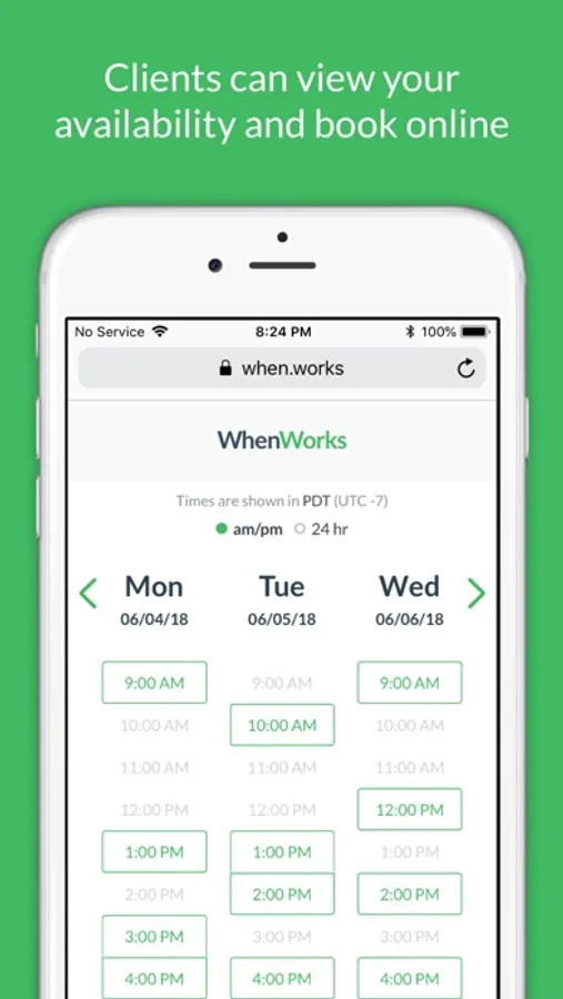 Setup is a breeze. Just install the app on your iPhone to create your free WhenWorks account and you'll immediately have a web page where guests can book appointments with you online.