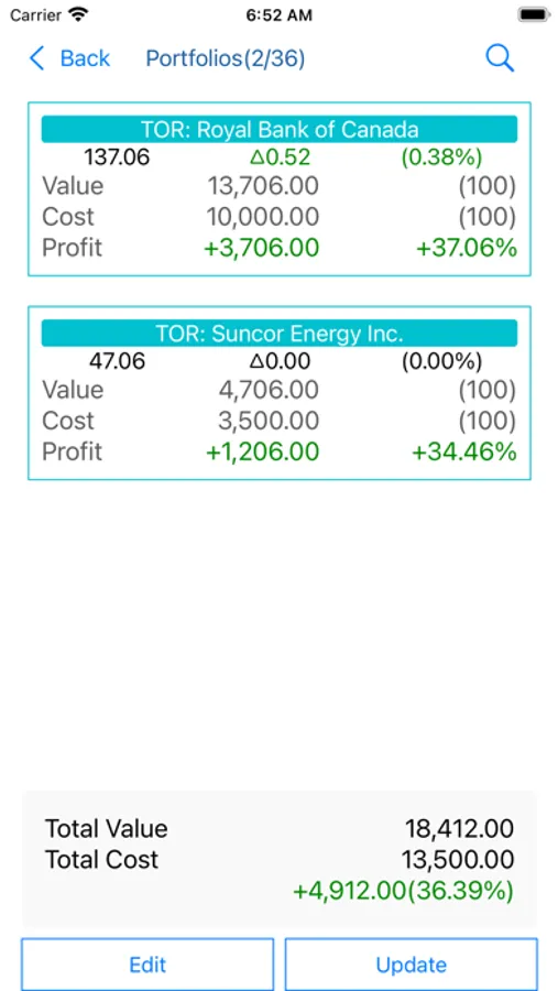 - Ability to search and add the stocks in stock list by stock number or company name.