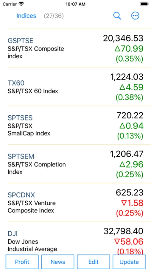 - Support S&P/TSX Composite Index, S&P/TSX Venture Composite Index, etc.