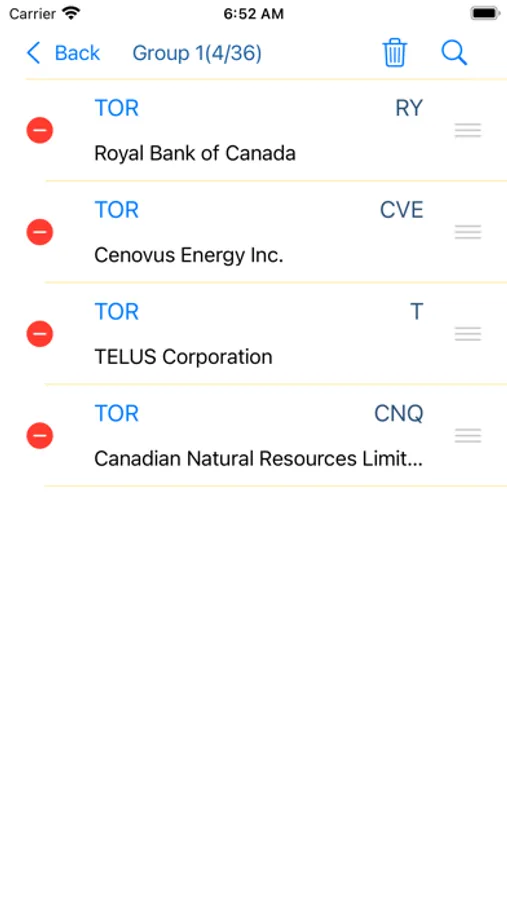 - Customizable list with ability to remove, add, re-order stock symbols.
