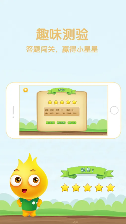闯关模式:有限时间内答对题目越多,得到的小星星也越多