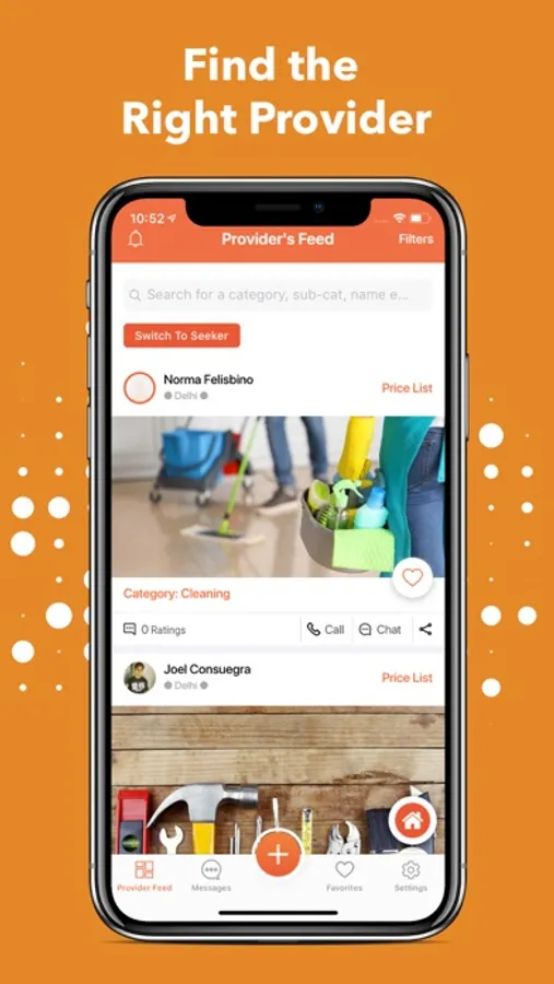 As a Service Seeker, you can Search and Filter through Categories and Sub-Categories, Price and location - OR - just Scroll through the FEED to find the Perfect Service Provider to complete your Job. We've also added Ratings, the ability to Short List and Geo-targeting Features to make the grueling task of finding a Service Provider much easier. Once found, Chat or Call your Preferred Provider directly from within The Neighbor Labor App and negotiate your price to complete your task - and All Without any additional fees.