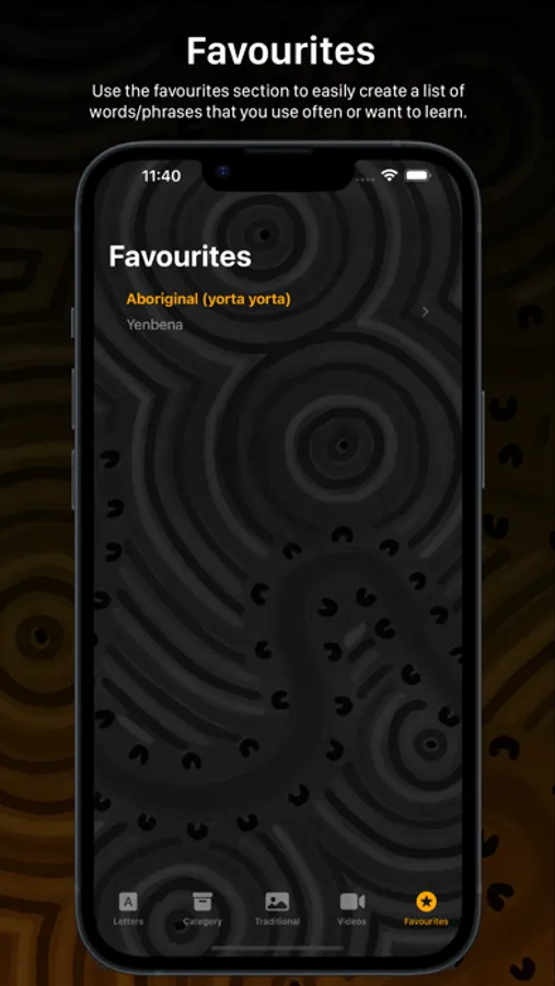 - Use the favourites section to easily create a list of words/phrases that you use often or want to learn.