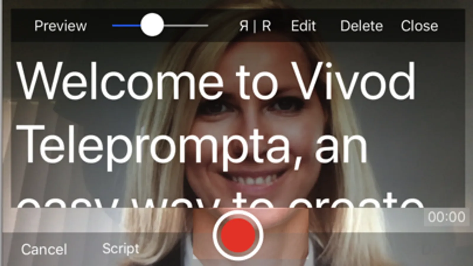 The app produces HD video from the rear camera and from the Vivod Teleprompta camera on the front of iPhones and iPads. With an integrated teleprompt function called Teleprompta, you can copy and paste from email, websites or documents on your device or type your scripts directly into Teleprompta. Create as many scripts as you want.