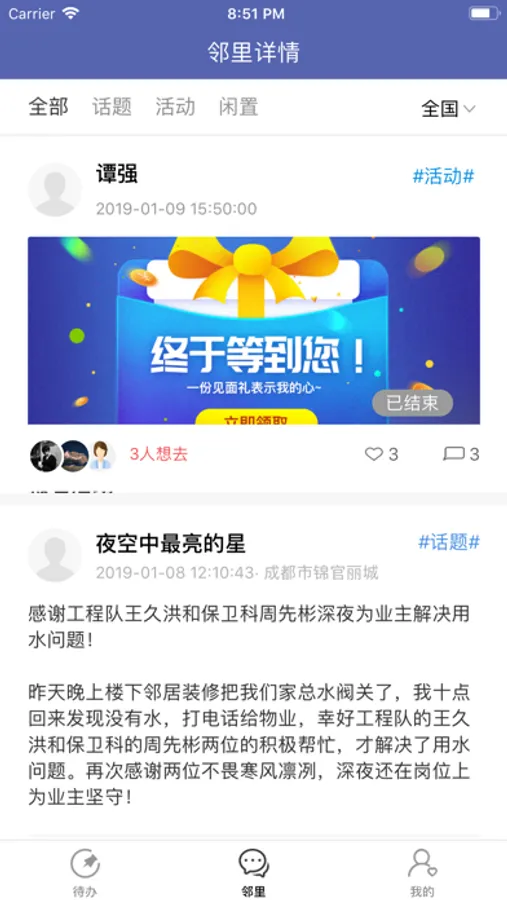 5.活动报名:公布各项目小区内活动信息,用户可在线报名活动