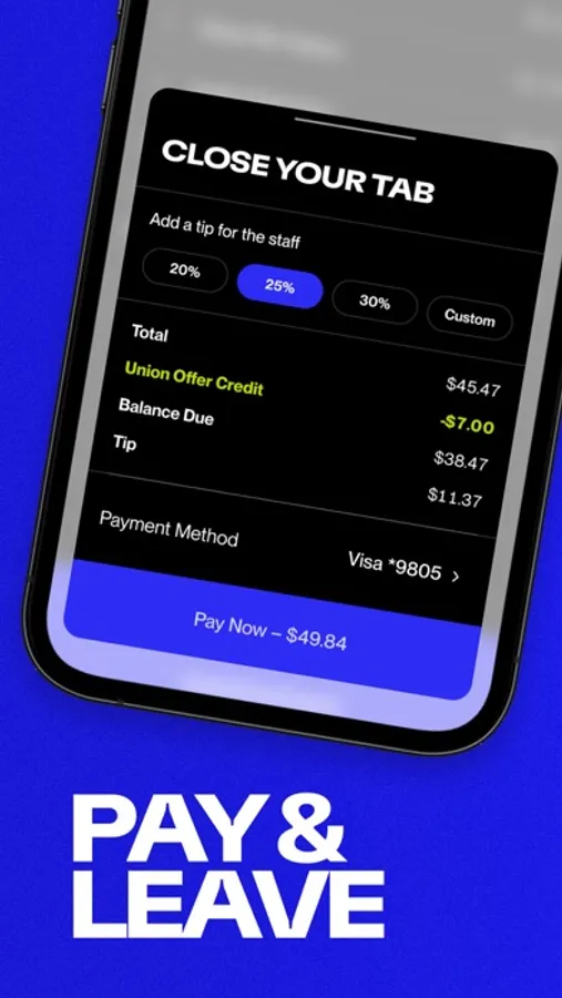 Order food & drinks right to your table and pay your tab on the Union App.