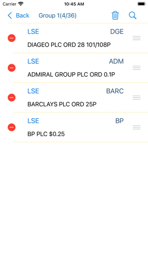 - Customizable list with ability to remove, add, re-order stock symbols.