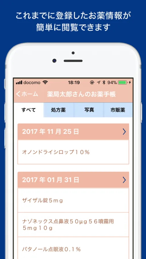 -自動登録:対応薬局で設定すると処方されたお薬情報が自動で記録されるようになります。
