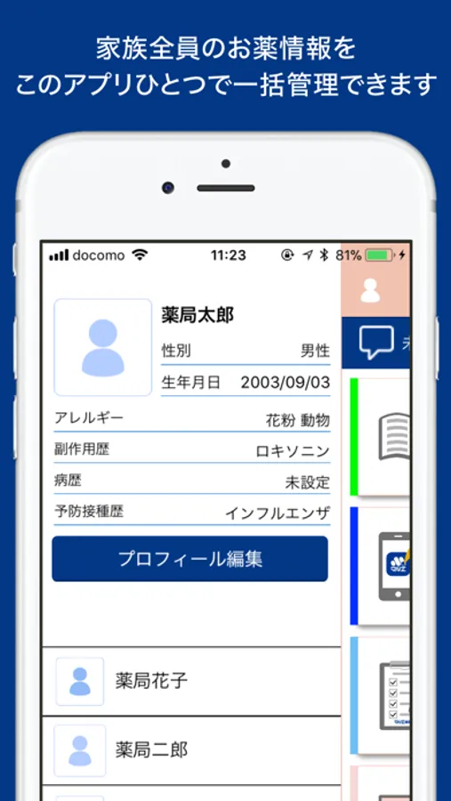 ②家族の情報も一緒に管理できるので、お薬手帳を持ち歩く必要がありません。