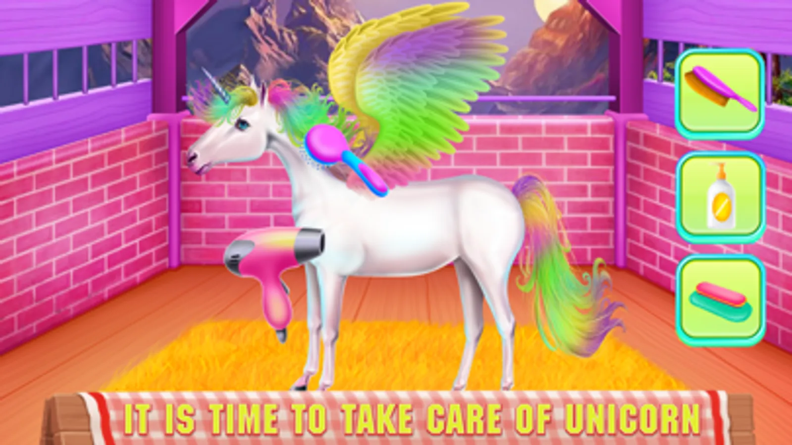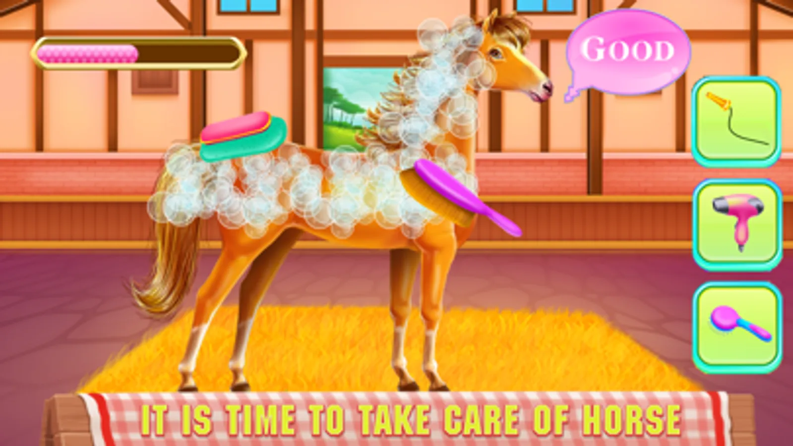 Have you ever wished for a horse of yours? Well, not anymore, this cool animal game will let you find all that is to know and how a horse is being taken care of. You have to begin by choosing the horse you want to be with, either is the brown horse or the unicorn. No matter which one you will go first the procedures are the same. So, take a closer look at the stable because it needs your attention immediately. Clean the dirt from the ground and make sure you get rid of the stinky garbage. Next is the part where you remove the spiderweb that is spread all over the place. Use the given tools to achieve the cleaning part and try to make the walls all shiny again. When you've finished this part you will be able to move to the one where you will be taking care of the horse medical condition. There are some foreign objects that are in the horse skin, remove them and make sure you clean the place so it won't infect. Apply a special substance and let it heal. His hooves need a recondition and you will be the one that cleans them and replace them. All that is left in this step si to bath him. Apply the shampoo, rub it until the foam covers the whole body and then clean him. Finish the bathing process and take the horse to the dressing room where you will be adding cute accessories and interesting clothing items. When you are done you have to do the same for the other horse/ unicorn depending on which one you have chosen first. Have fun and learn the way a horse should be treated.