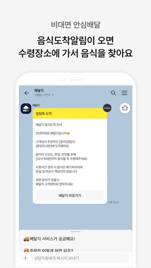 - 알림 : 주문확인, 취소 등 서비스 관련 알림